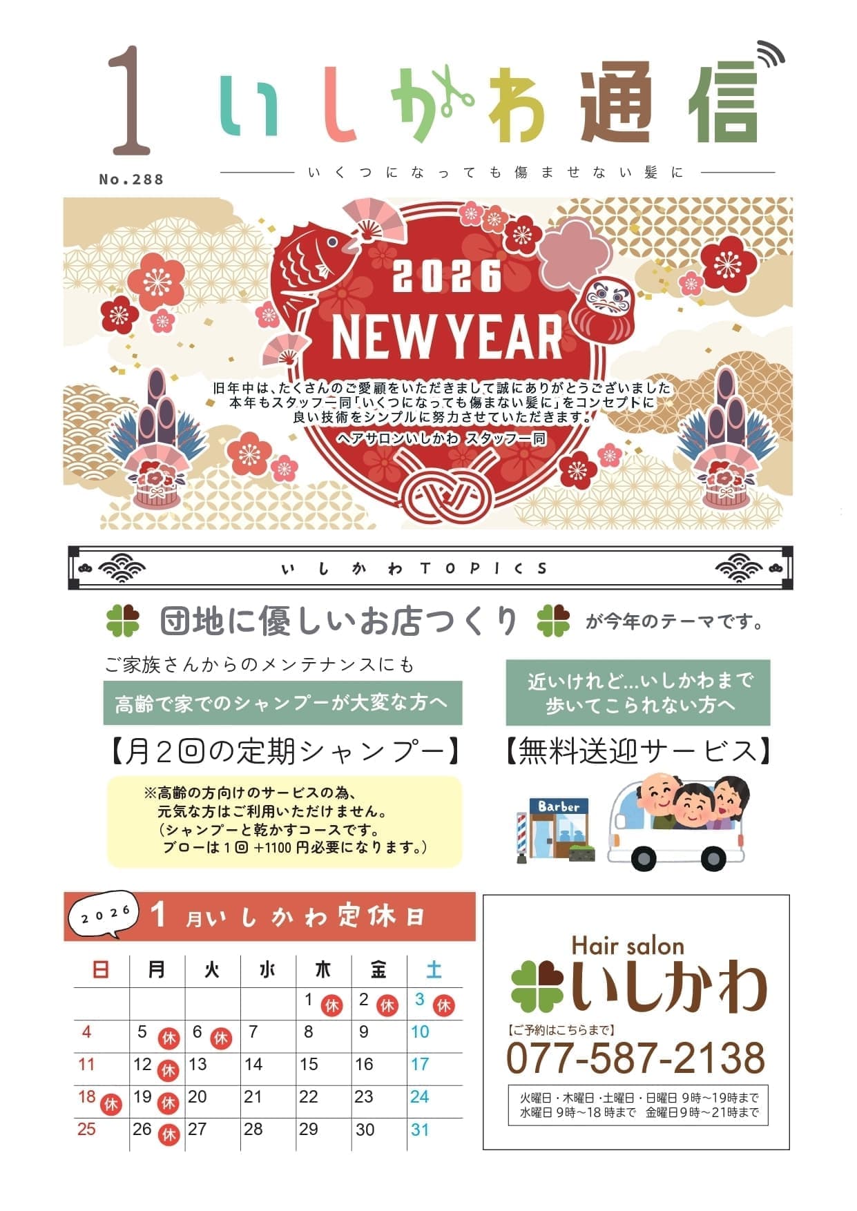 | 2026/1/1 | 新年あけましておめでとうございます 1/4(日)より営業させていただきます。 |