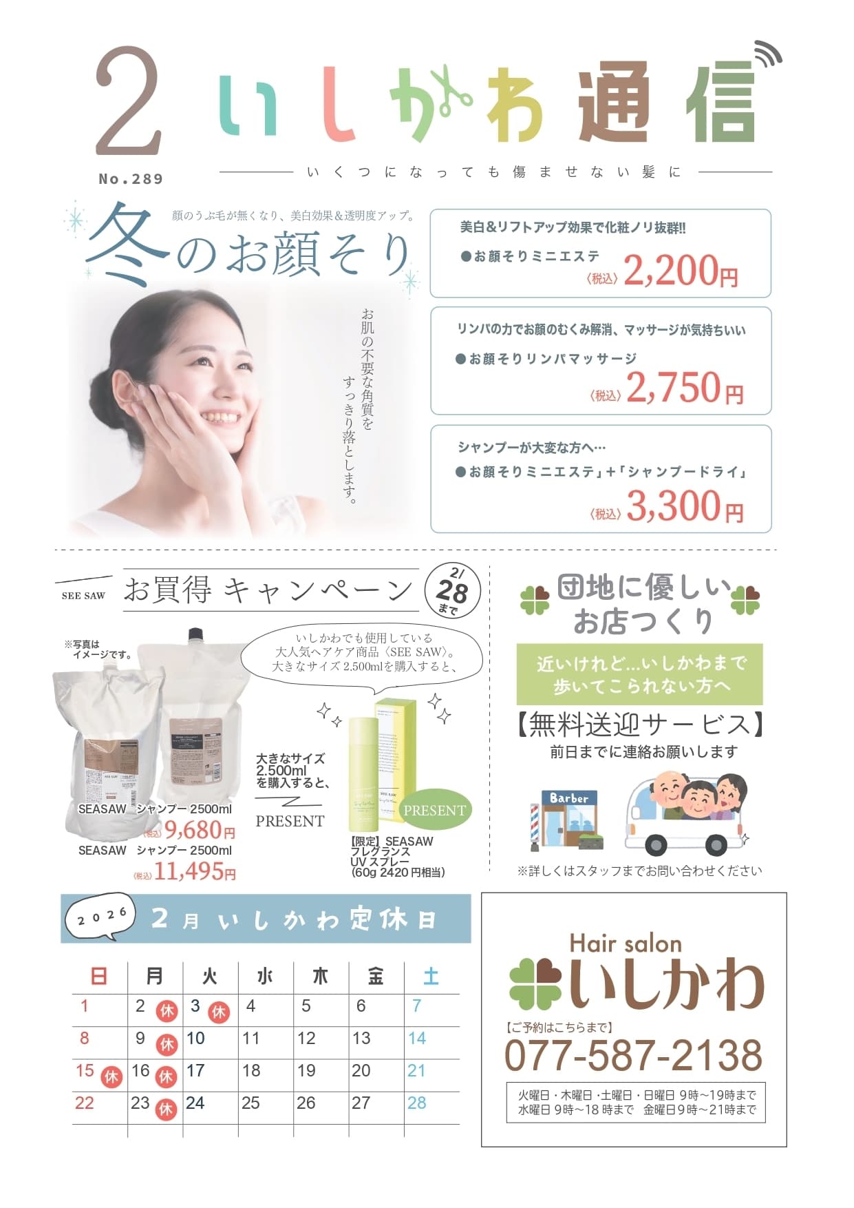 | 2026/2/1 | 2月の定休日は、「2.3 9 15.16 23」です。 |