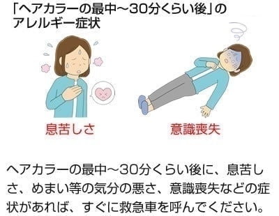 症状はヘアカラーの最中~30分くらい後に現れ始めます。