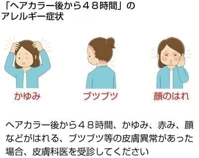 症状はヘアカラー後から48時間後くらいの症状が最もひどくなります。