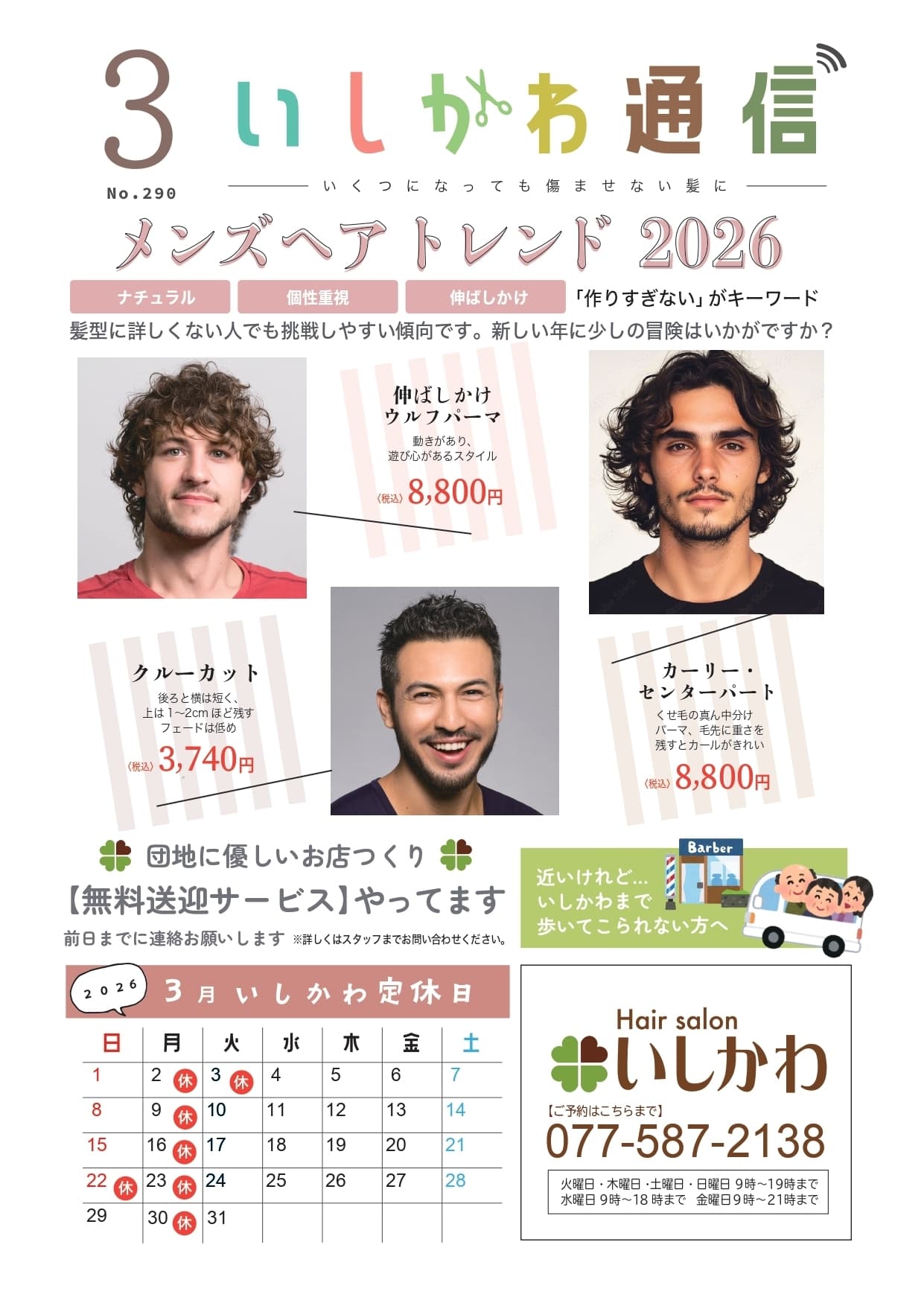野洲の散髪屋ヘアサロンいしかわです。カットと縮毛矯正が得意な理容室